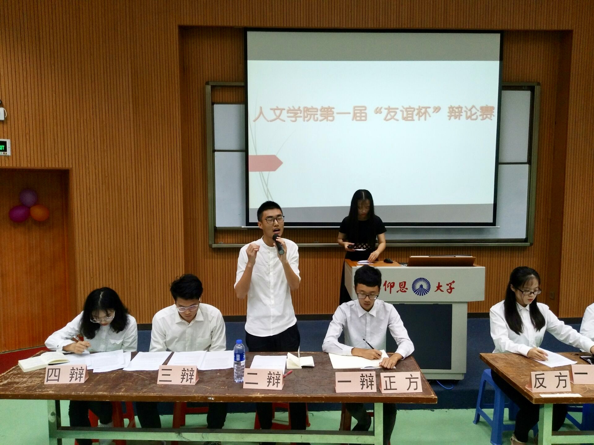辩论赛现场 本次辩论赛以班级为单位派队伍参赛,经过初赛的比拼,共有四支队伍突出重围,它们分别是17新闻2班辩论队,17中文2班辩论队,17广告专升本辩论队以及红城文学社代表队。本场比赛以“当你获得一颗不知名的高等生物蛋,我们应该呵护它还是在一开始就毁灭它”为题,比赛过程中,参赛队伍乘风破浪,气势如虹,自由辩论环节将比赛气氛再次推向高潮,现场气氛迅速升温,精彩不停,掌声不断。最终红城文学社辩论队获得冠军,17中文2班辩论队获得亚军,17广告专升本辩论队获得季军,其中来自红城文学社辩论队的陈俊翔同学获得本场的最佳辩手。