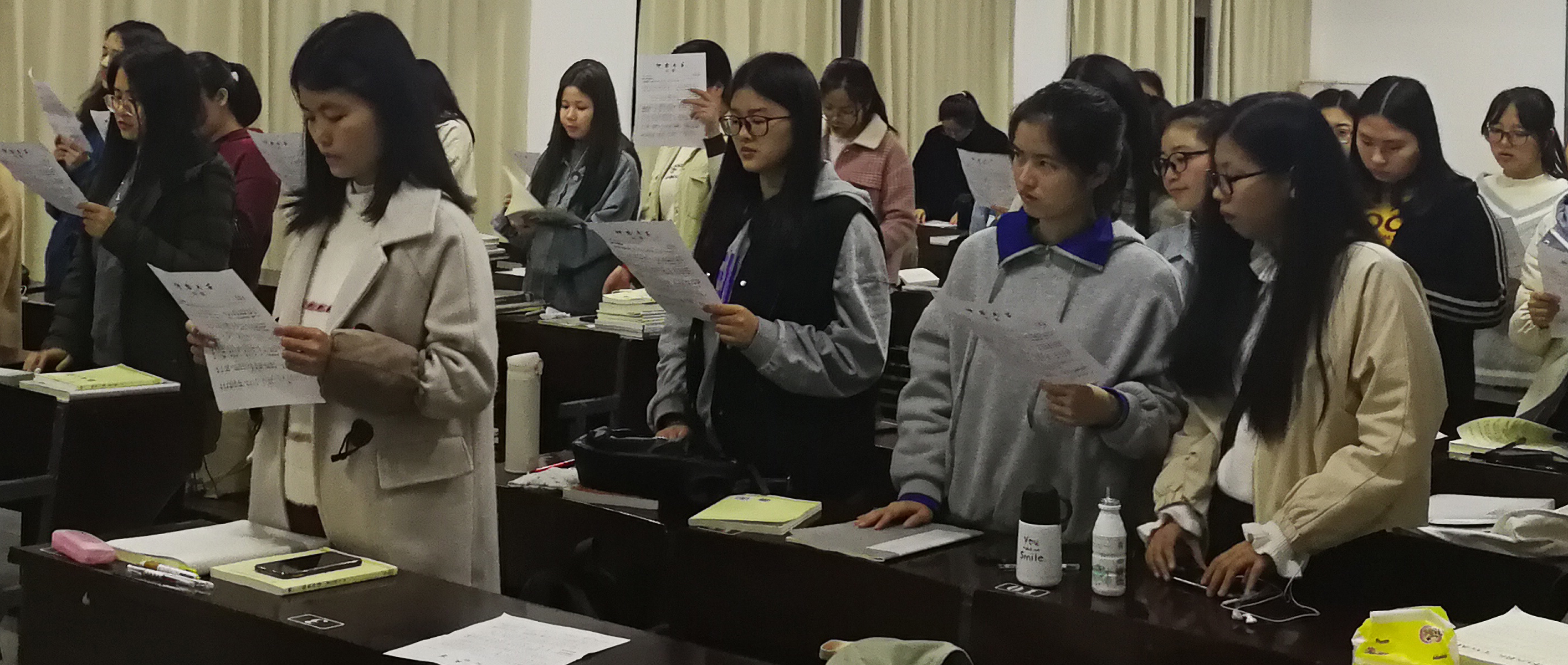 在这个碧草连天,桃花纷飞的季节,每当你走在校园里,时不时就能听到或慷慨激昂或悠扬欢快的歌声。哦!那是各班级的同学为迎接学校第二十届五四合唱节,利用课余时间在教室里积极排练!
