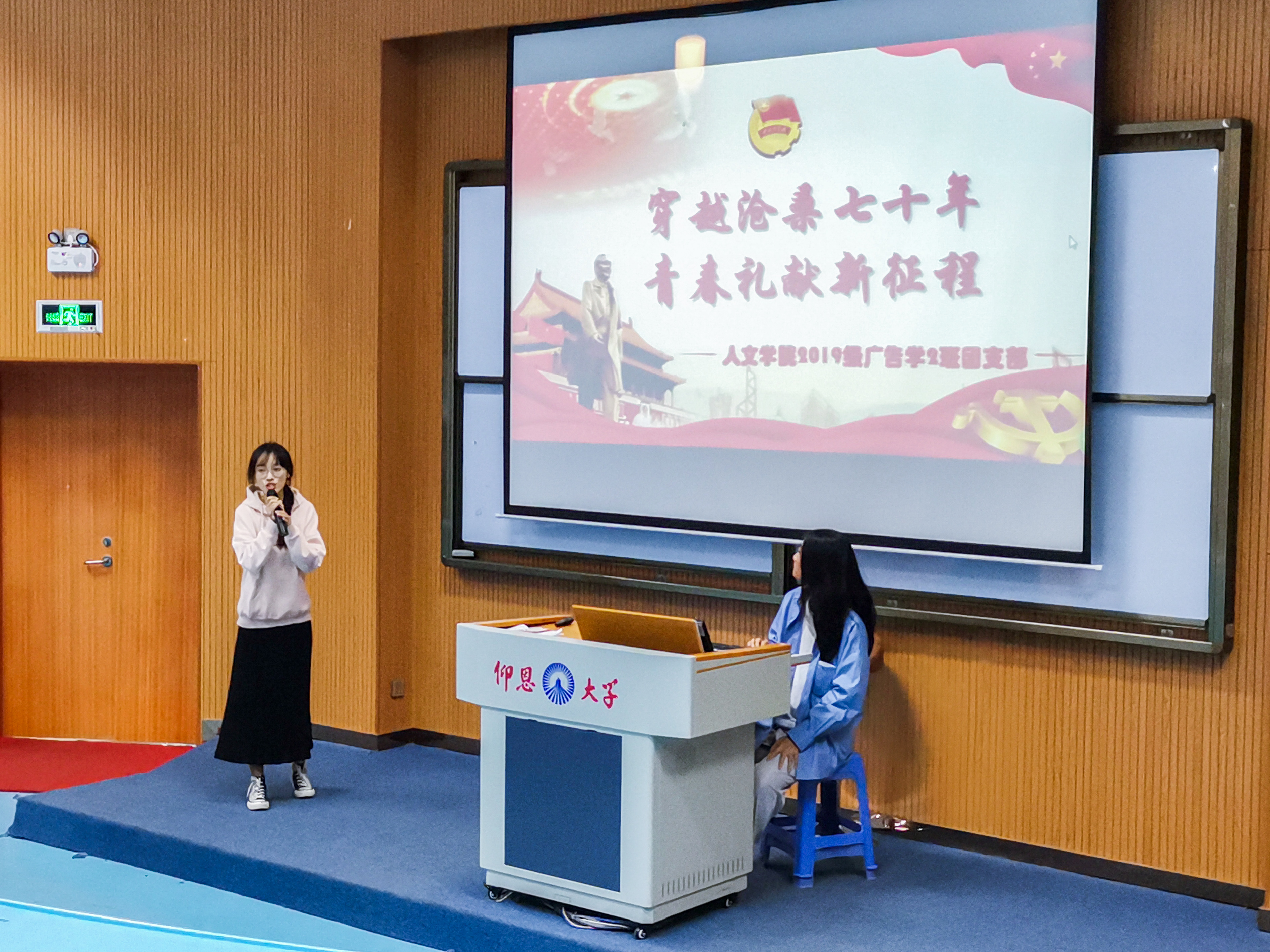 11月25日下午,ac米兰官网中文网站在新区和昌教学楼海纳讲堂举办了以“青春礼赞新中国,砥砺奋进新时代”为主题的团日活动复赛。ac米兰官网中文网站党总支书记胡友仁、副书记刘巧玫、辅导员陈峰、李少聪、王勇浜以及ac米兰官网中文网站18级、19级同学到场观看了此次比赛。