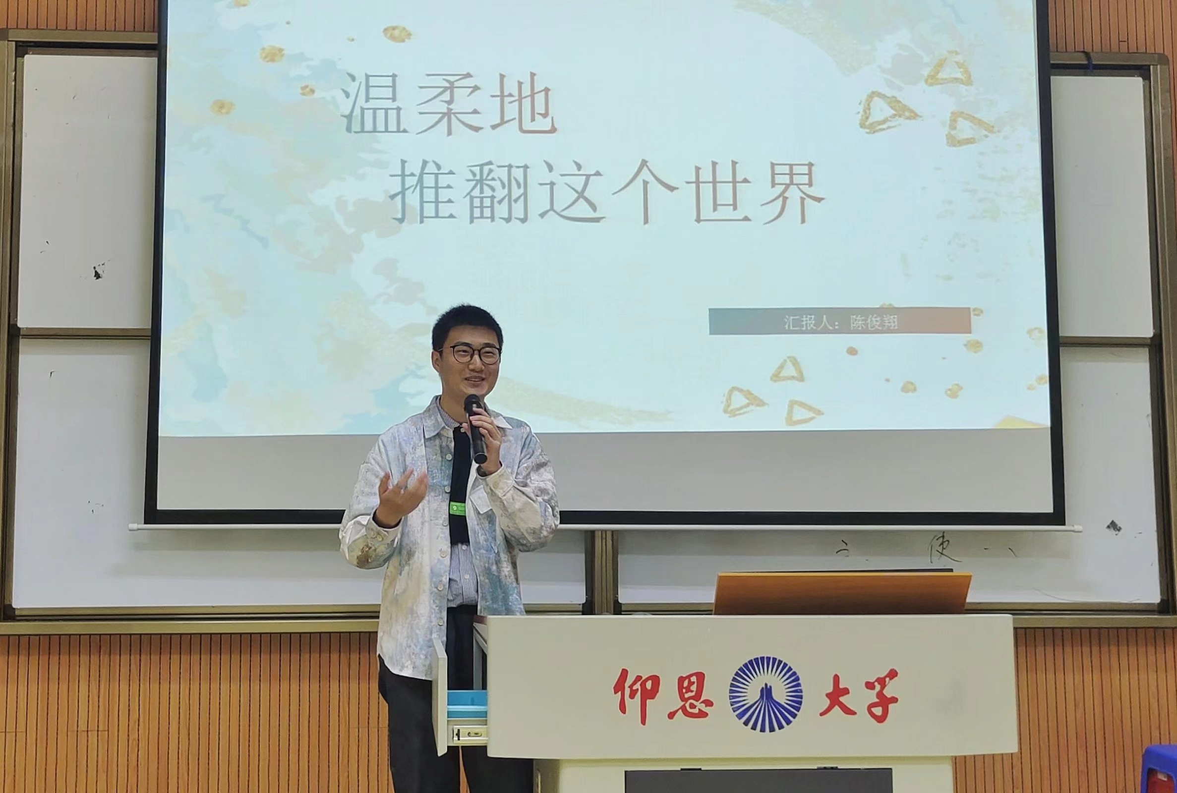 杨倩叮嘱学弟学妹们在今后的大学生活中要“时刻保持危机感”,养成“好学、好问、好动手”的好习惯。 随后,陈俊翔学长以“温柔地推翻这个世界”为主题,引用“不破不立”启发学弟学妹们要用新思维开启大学生活。傅智佳学长强调了实践的重要性,讲述了自己从事学术研究的经历,勉励在场同学要“做有理想有本领有担当的新时代青年”。紧接着,投笔从戎的陈玉莲学姐分享了自己两年来的军旅生活。