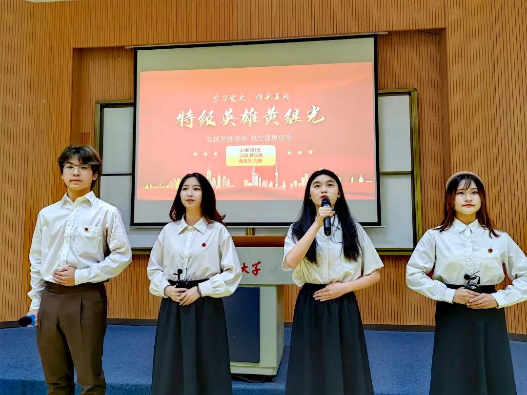 在本次比赛中,来自21级新闻1班的“桃林留硕果”队的四名成员江硕、林玉琳、陶海玲、刘婷,以《特级英雄黄继光》为题,讲述了21岁用青春热血誓死扑灭敌人嚣张气焰的特级英雄黄继光的感人故事。最终,他们以第二名的好成绩取得本次活动的二等奖。(ac米兰官网中文网站团委/文图)