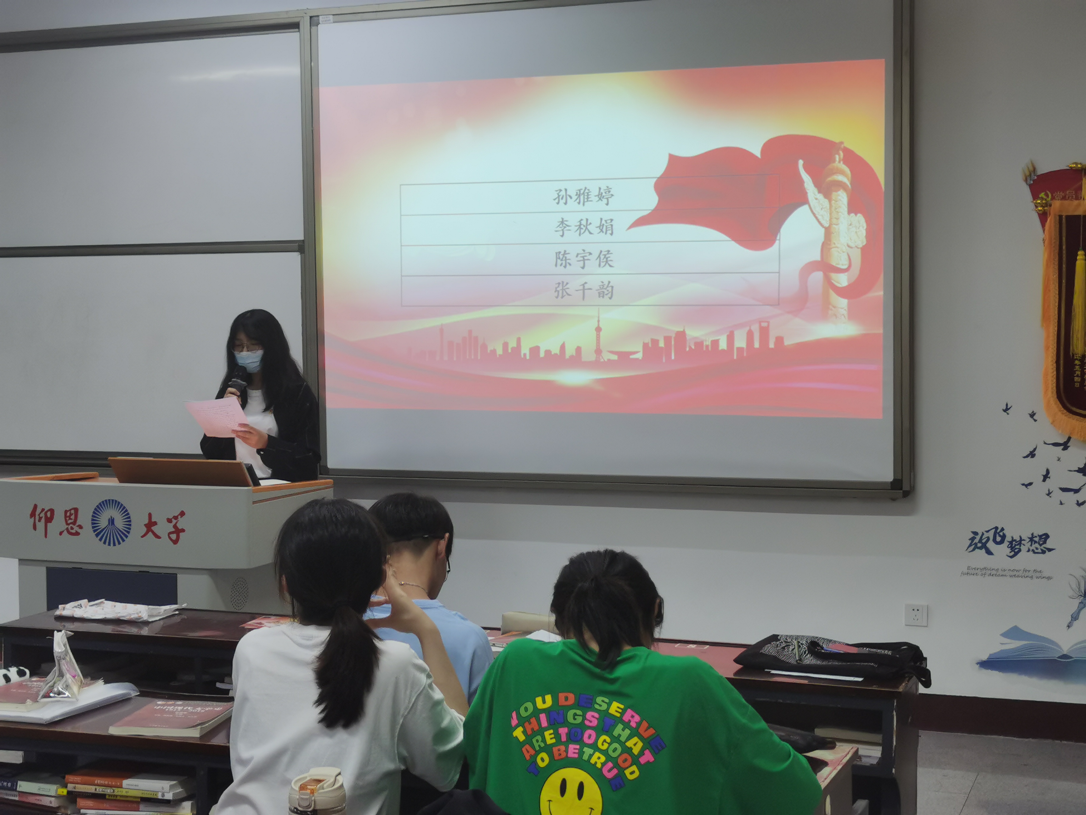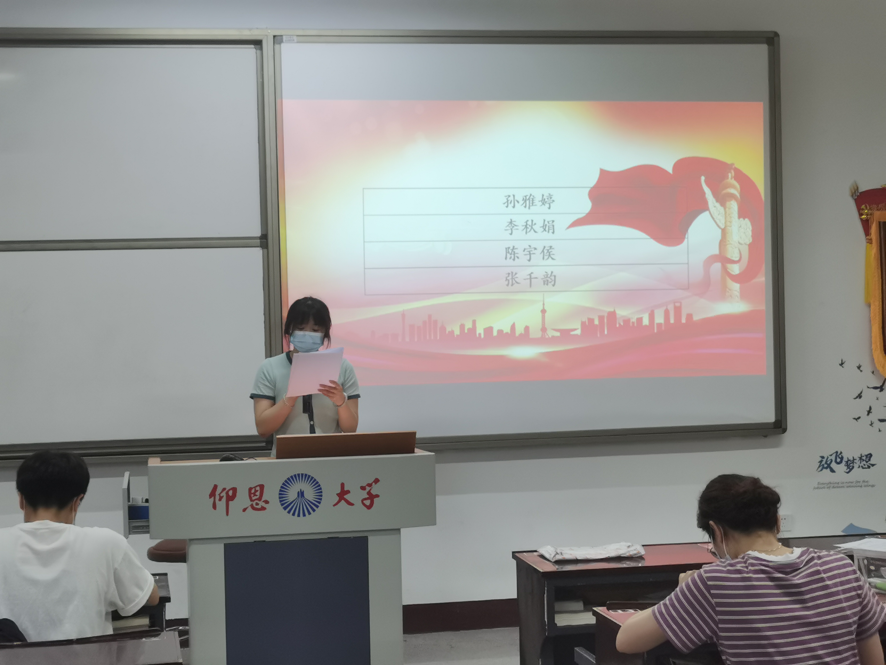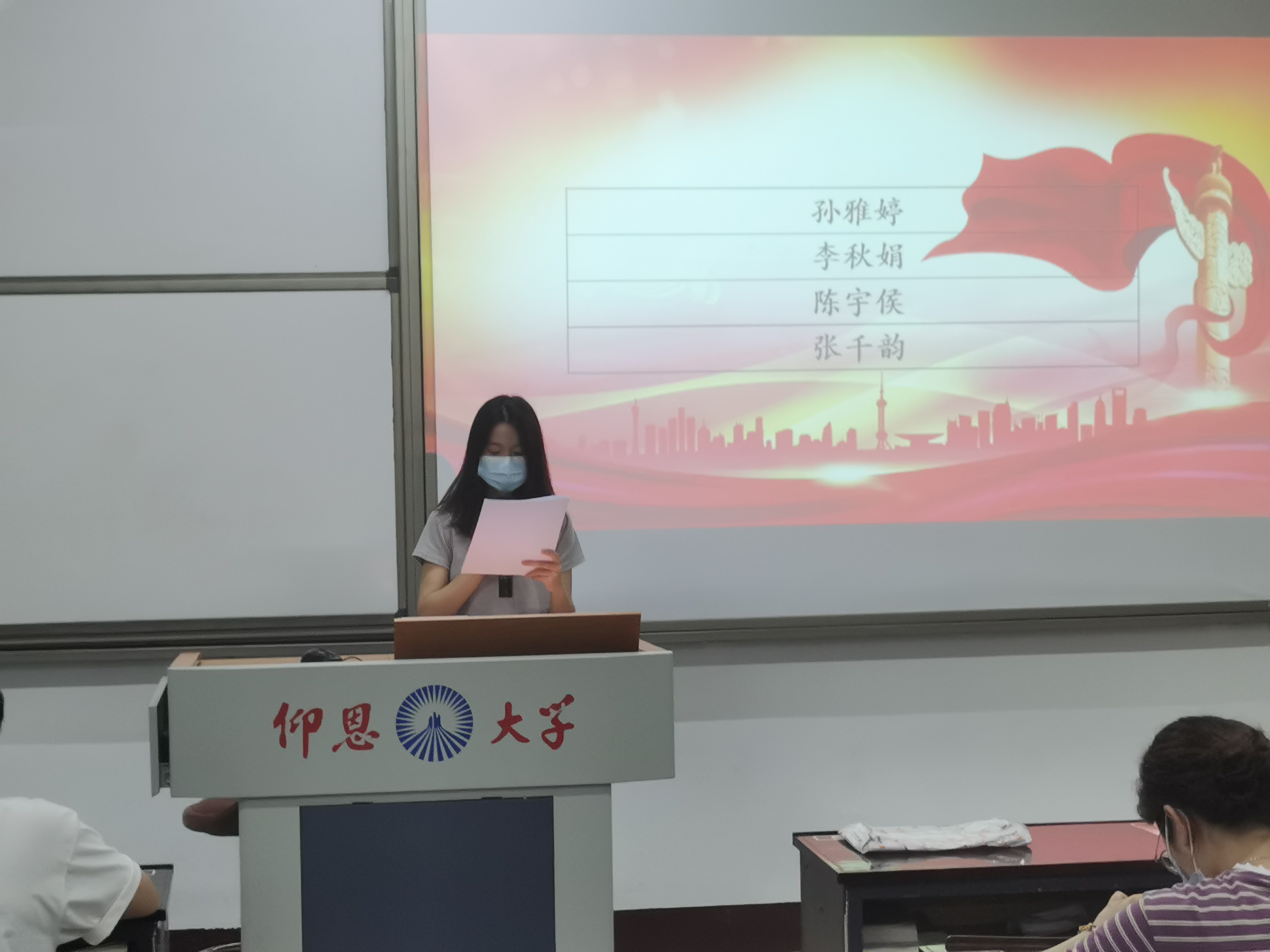 发展对象上台表态 大会认为,孙雅婷、李秋娟、陈宇侯、张千韵4名同志基本符合党员条件,经与会正式党员投票表决,大会一致同意接收孙雅婷、李秋娟等4名同志成为中共预备党员。