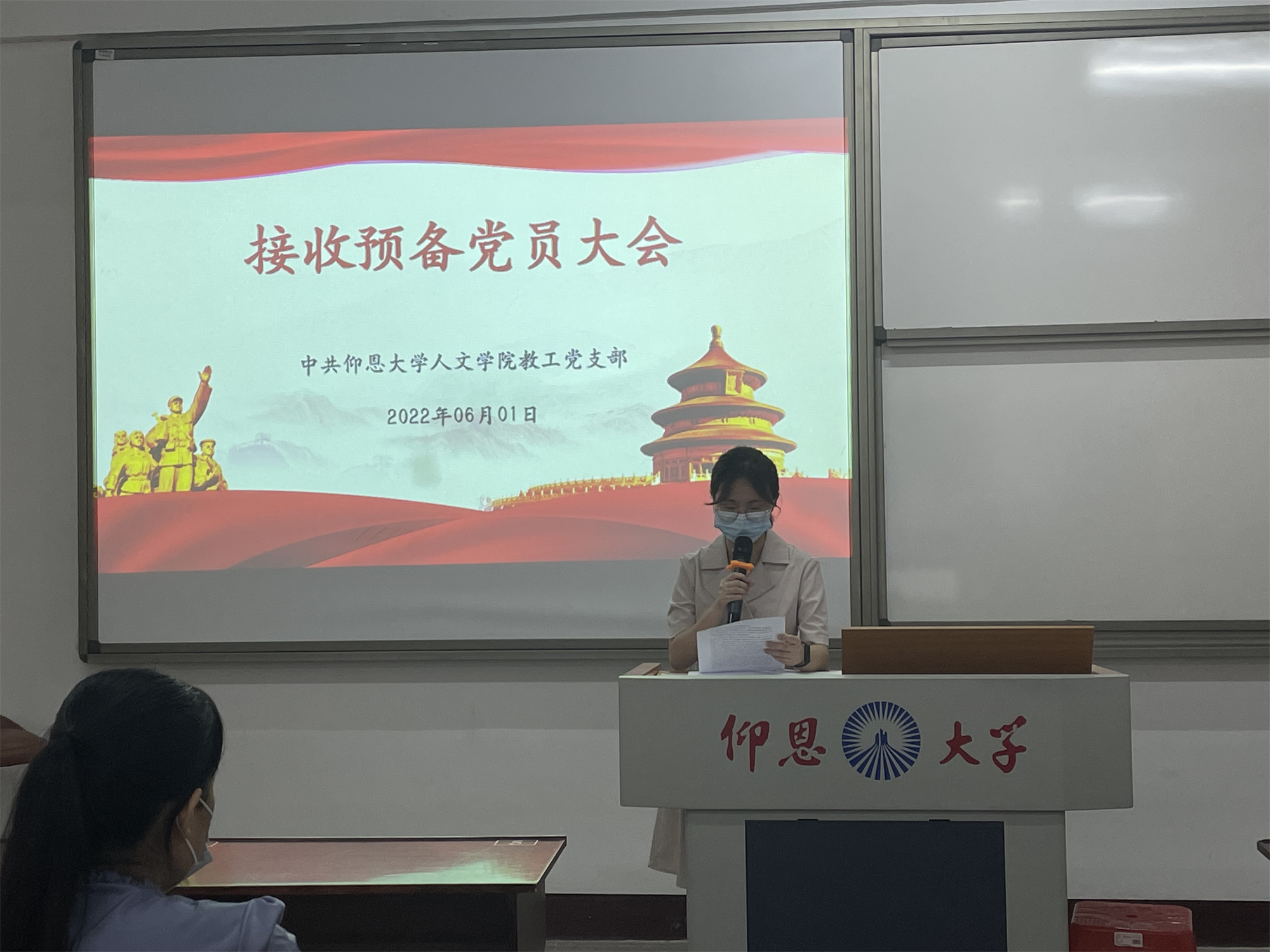 为进一步加强党员队伍建设,推进ac米兰官网中文网站教工支部党员发展工作,6月1日下午,ac米兰官网中文网站教工党支部在普照楼307教室召开接收预备党员支部大会,会议由教工支部书记刘丹主持,支部全体党员及预备党员参加。