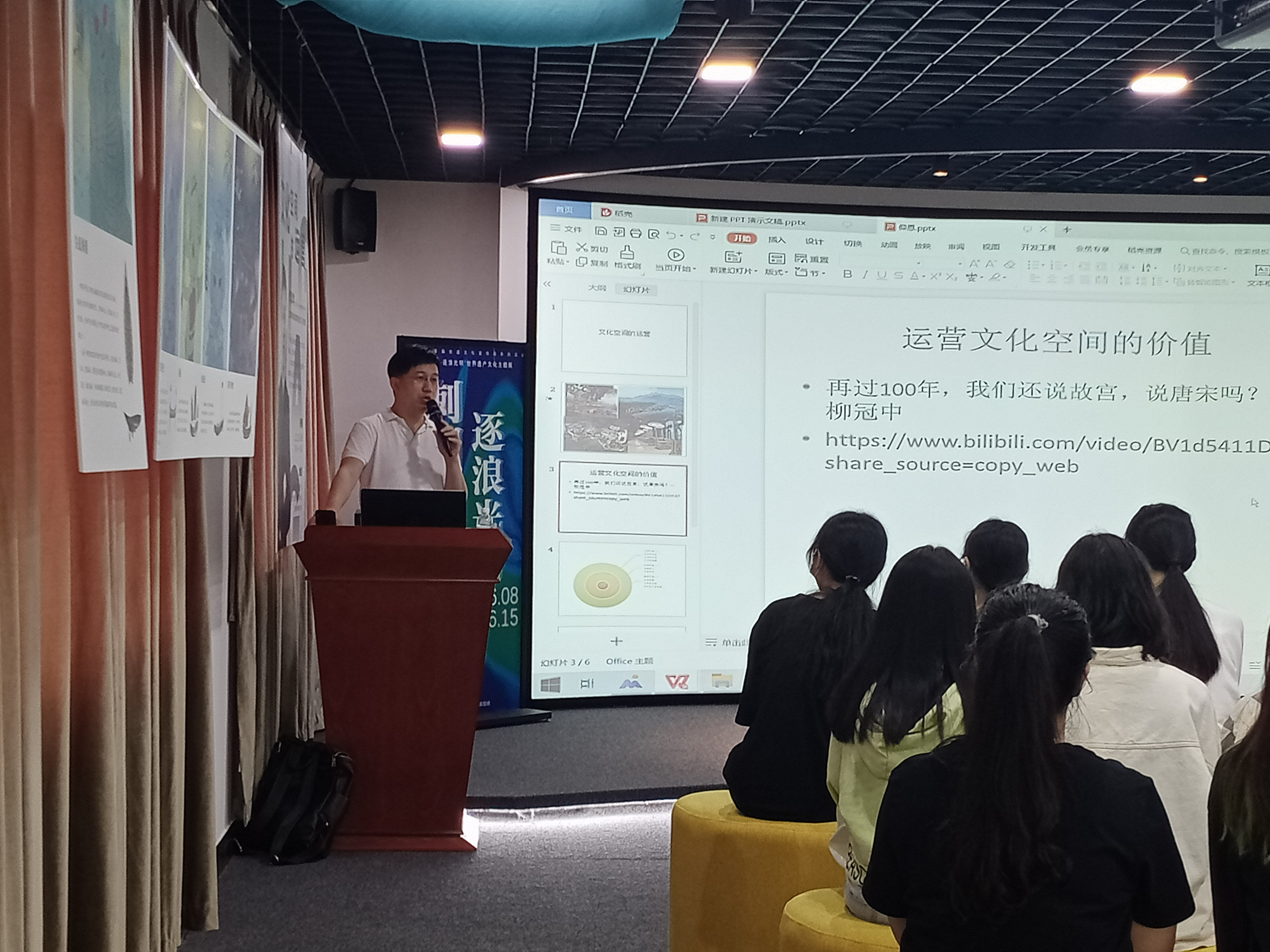 其次,空间运营的商业模式包括自营、承包和委托。李享学老师把三者的关系进行了详细的解释。业态是所有空间运营的呈现方式。它是由产品、服务、品牌和IP构成的,它们的关系是各司其职,密不可分。之后便引出所有的文创产品最重要的一点就是要有内容,要有品质并且要有广泛的渠道来去宣传它。最后,李享学老师还提出要把握好幻想和觉醒二者的正确关系,通过举例说明来加深同学们的认识。