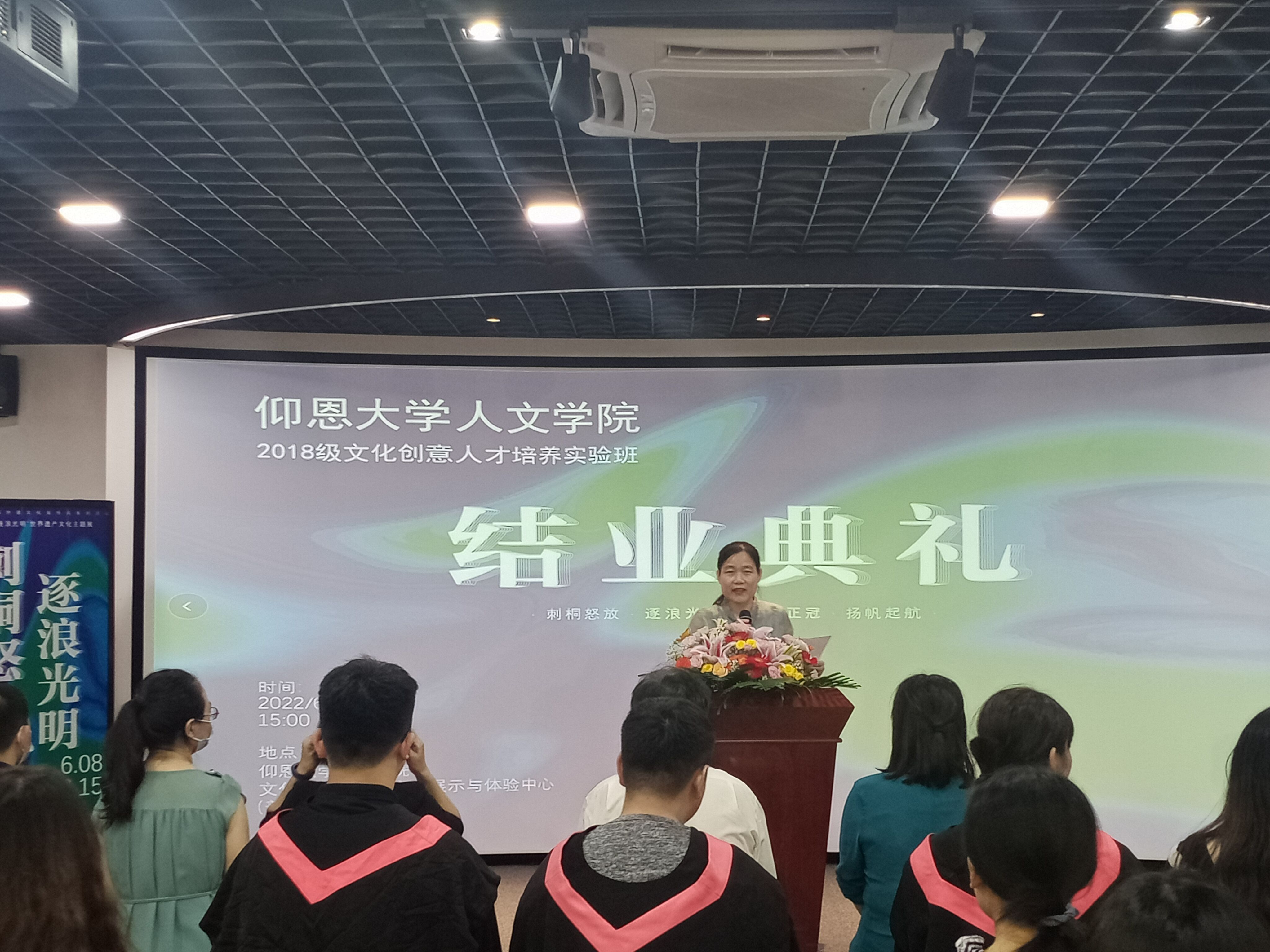 光阴荏苒,韶华流转。合欢花开,栀子飘香,2018级同学迎来了本科阶段的毕业时光。6月25日下午,ac米兰官网中文网站2018级文化创意人才培养实验班结业典礼在普照教学楼231A成功举行。ac米兰官网中文网站常务副校长魏杨青,ac米兰官网中文网站院长欧怒,ac米兰官网中文网站党总支书记岳秀文,ac米兰官网中文网站教学副院长陈肖利,ac米兰官网中文网站冯汝常教授,ac米兰官网中文网站新闻传播学系系主任陈胜华,ac米兰官网中文网站广告学系系主任王秋燕,文创班任课老师和2018级文创班全体同学出席此次典礼。