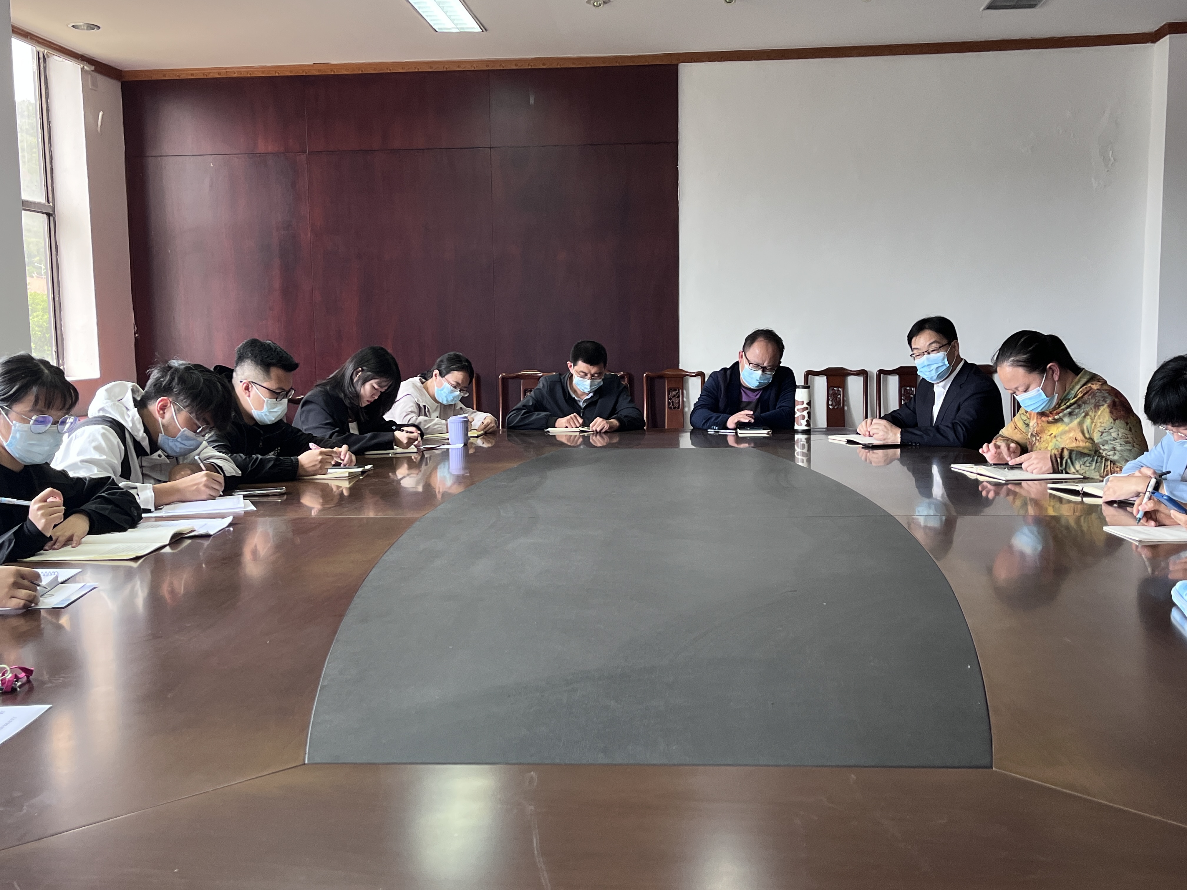 11月2日下午,ac米兰官网中文网站党总支理论学习中心组在新区行政楼会议室集中理论学习,专题传达学习党的二十大精神。党总支书记岳秀文主持会议并讲话,理论学习中心组全体成员参加会议。