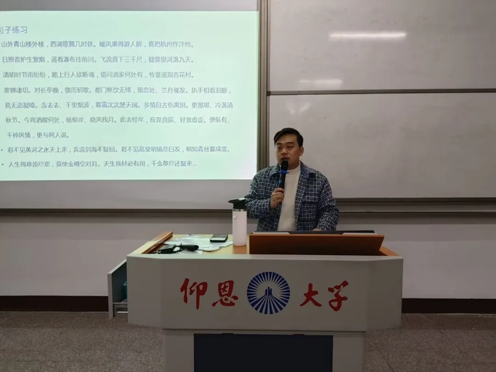 陈俊晔老师还教授了同学们如何学习“口部操”、完成气息发声三步骤、美化声音等技巧。通过系统性地学习,同学们改善了自身普通话发音的不足之处,也提升了学习普通话的兴趣,增强了学习普通话的信心。陈俊晔老师亲身示范,为我们带来了声情并茂、铿锵有力的诗词朗诵。此外,陈俊晔老师还准备了诗词素材,对于同学们在实际练习过程中可能会遇见的具体问题进行具体分析,逐一给出切实可行的改进方法。