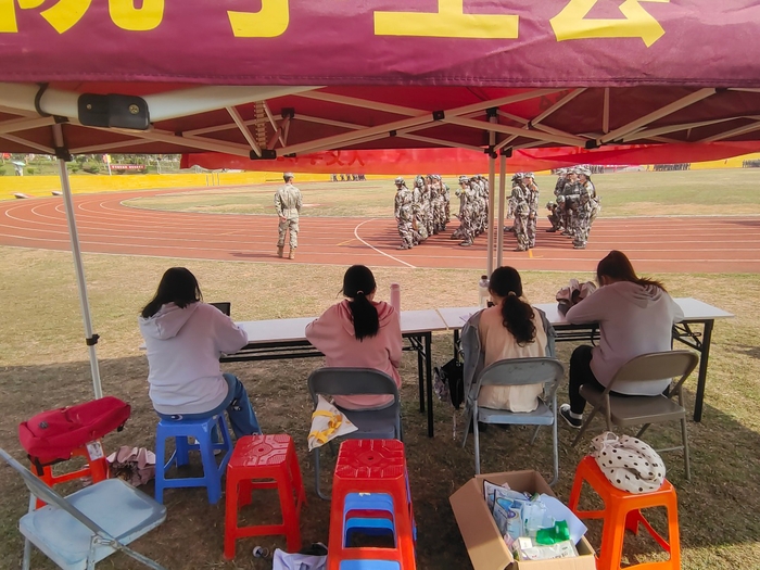 军训期间,米兰官网在新旧区训练场各设有三个值班岗,值班岗位除了配备帐篷及桌椅,还准备了水,防暑的药物、葡萄糖和各类补充能量的食物,为23级新生的军训生活保驾护航。