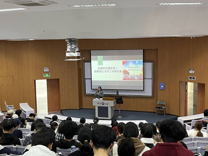 本次讲座主题鲜明,思路独到新颖、深入浅出,既有浅显易懂的理论阐述又有多角度的分析和生动的事例,有助于帮助人文学子认识到学习国家通用语言文字的重要性,为新时代语言文字工作进一步发展贡献出自己的一份力量。(文图/陈周锦)