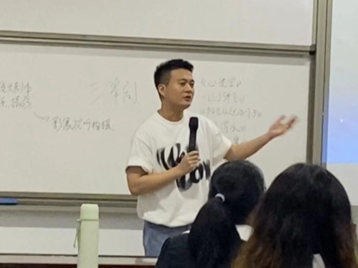 为进一步提高学生的专业素养,拓展学生的创作思维,4月12日下午,米兰官网特邀厦门达愉文化总经理、即兴之作影业创始人——陈森辉老师为23级新闻学专升本班级讲授《剧本与分镜头脚本创作》课程。