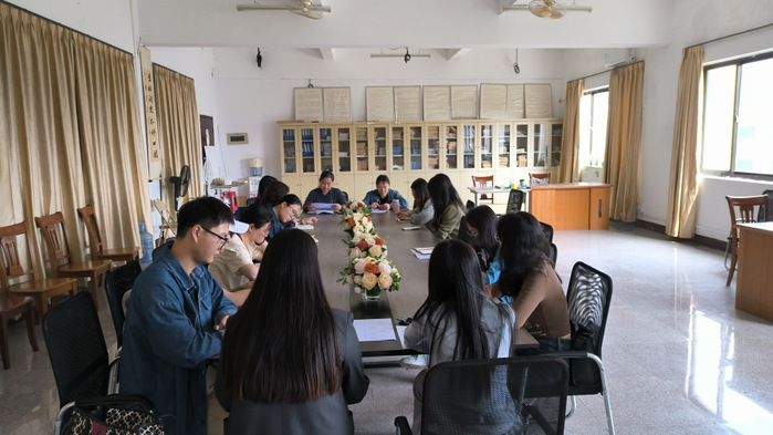 4月26日下午,ac米兰官网中文网站党总支书记兼副院长岳秀文在普照楼308主持召开党纪学习教育工作部署会,党总支支委、各支部支委参加会议。