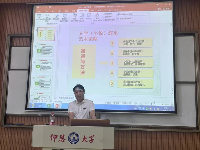 为深入理解和感受文学作品所传达的内涵,培养同学们的逻辑思维和创作能力,6月19日下午,ac米兰官网中文网站开展仰恩大讲堂第44讲,邀请祖国颂教授于第三教学区和昌楼惟勤讲堂为23级人文学子带来《文学叙事:一种效果的策略》讲座。