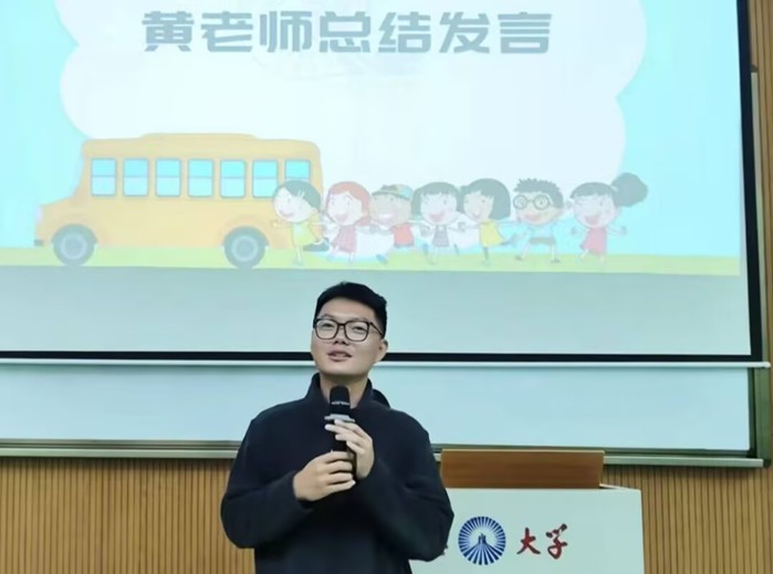 在进行了第二次抽奖后,荧幕上插播了一段新主席林一菲准备的视频《她与ac米兰官网中文网站学生会的故事》。她通过分享自己的故事,让大家更多的了解院学生会这个大家庭,并能让大家在学生会里共同成长,不留遗憾。接着,黄老师总结发言提到过去一年里干部们的成长,用幽默风趣的语言讲述了与干部们的种种趣事,现场欢声笑语不断。黄老师用生动的事例劝勉新旧干部干事们在错误中成长,踏踏实实工作,不断提升自己的能力,同时也表达了对今晚节目演出的成功以及学生会工作一年比一年做的好的肯定和赞赏。最后,老师祝愿大家可以在学生会工作中学到更多知识与技能。