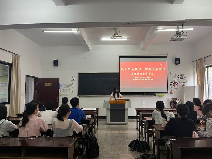 2025年6月18日,中国语言文学系学生第一党支部于普照楼101A召开“筑牢作风堤坝,护航发展征程”专题学习党员大会,旨在进一步强化党员的作风建设意识,提升支部的凝聚力和战斗力。支部书记赵潇潇主持本次活动。