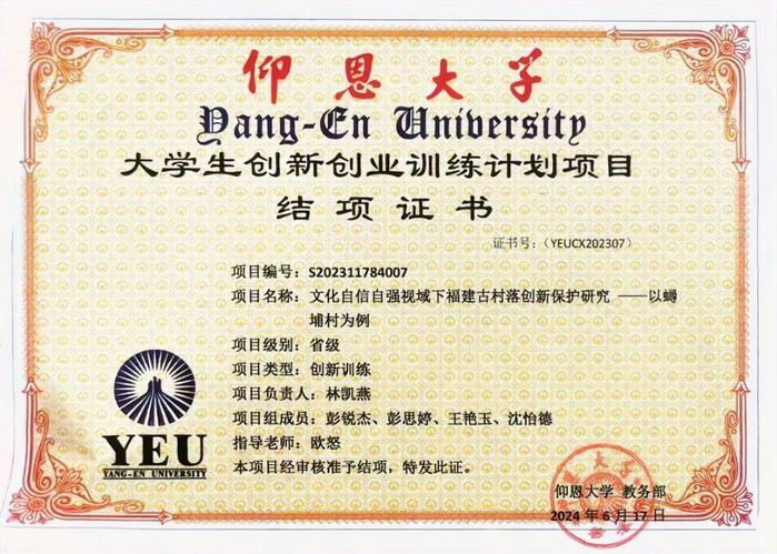 其他课程:普通话、《诗经》选讲、教育心理学、西方文论、文艺美学、闽南文化概论等。
